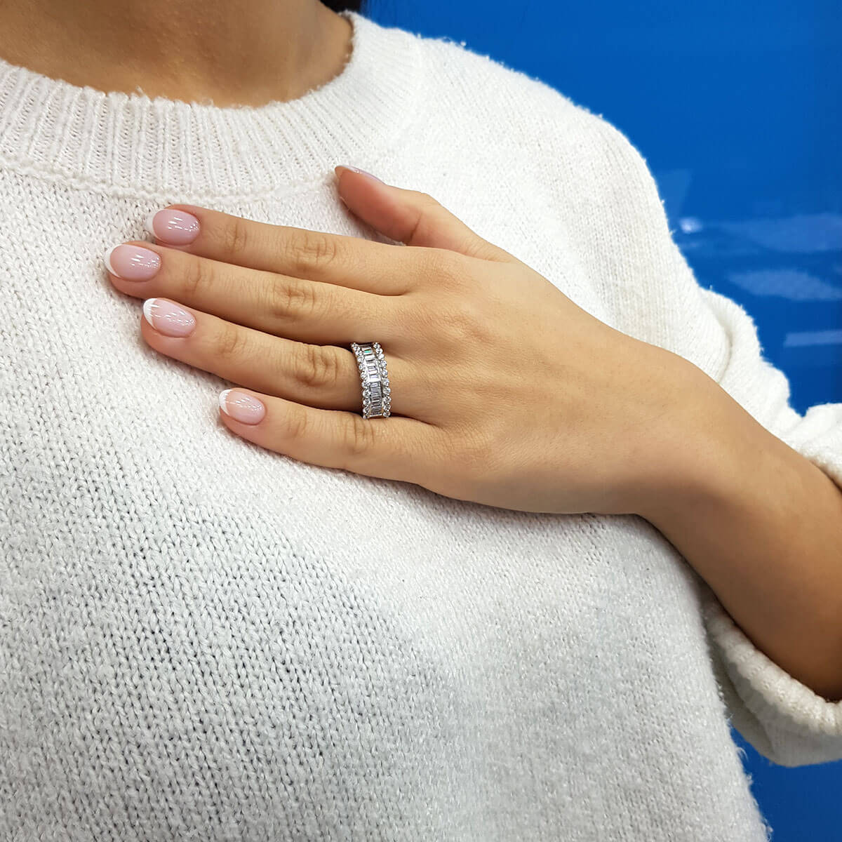 1.92 Carat Baguette and Round Diamond Half Eternity Wide Band Ring